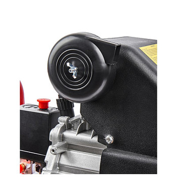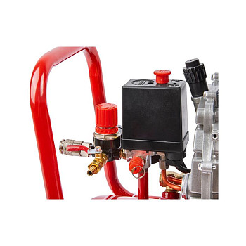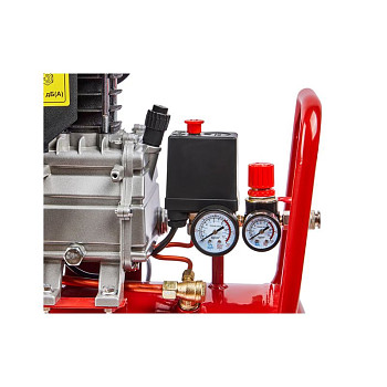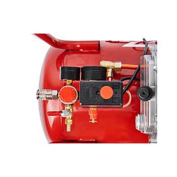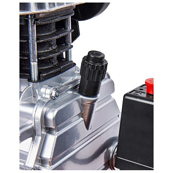 Устройство продумано для удобства и безопасности пользователя. Ресивер вертикального типа объёмом 24 литра занимает минимум полезной площади. Надёжный чугунный цилиндр эффективно отводит тепло. Система защиты включает в себя клапан сброса давления и термовыключатель двигателя, который предотвратит перегрев. Для комфортного обслуживания в конструкции предусмотрен лёгкий доступ к маслозаливной горловине. В комплектацию уже входит набор стандартных переходников для быстрого подключения пневмоинструмента.