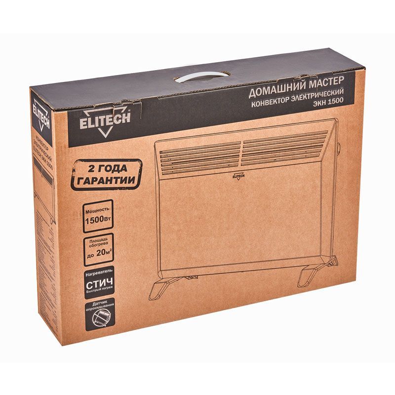 Когда наступают холода, а центральное отопление ещё не включили или его мощности недостаточно, на помощь приходит компактный и эффективный обогреватель. Конвектор Elitech ЭКН 1500 создан для быстрого создания комфортной температуры в помещении, работая по принципу естественной конвекции воздуха. Он станет надёжным решением для дополнительного или основного обогрева комнаты площадью до 20 квадратных метров.