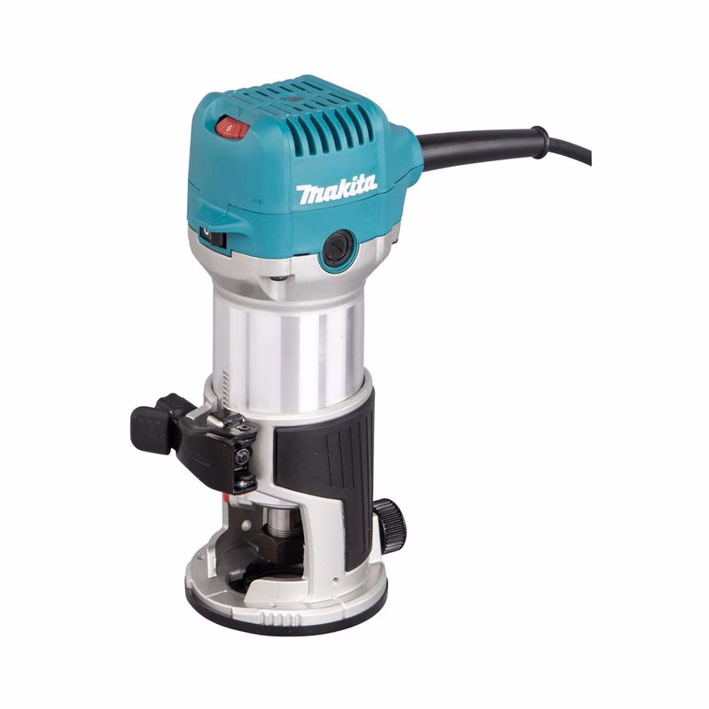 Кромочный фрезер Makita RT0702CX2 предназначен для декора по шаблону, фрезерования по кромке, выборки паза под петли и других мелких работ, где нужна точность и аккуратность. Подходит и для профессионального, и для любительского использования. Работает от сети 220В, поэтому не требует особых условий - фрезер можно установить в обычной мастерской или в гараже.