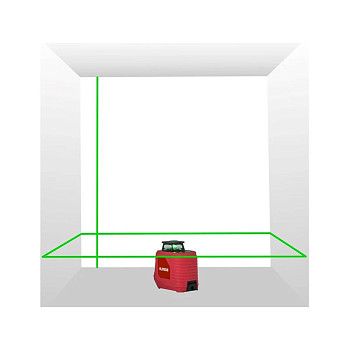 - Пять ярких зелёных лучей: Горизонтальный и четыре вертикальных луча позволяют одновременно проецировать крест, две отдельные вертикали и отвесную точку над прибором (зенит), что необходимо для комплексной разметки.