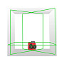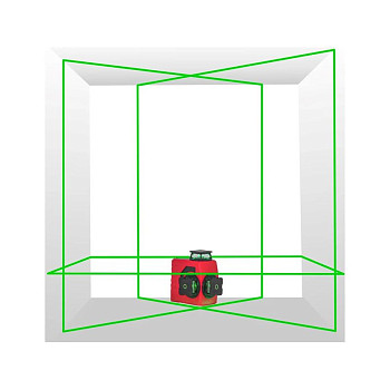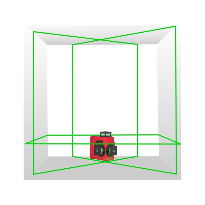 - Проецирование 12 лучей: 4 вертикальные линии, 4 горизонтальные и 4 надир-зенит (отвесы вверх и вниз). Это позволяет одновременно размечать стены, пол и потолок.