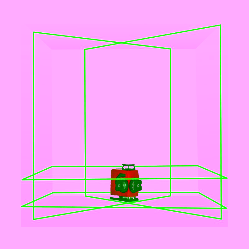 - Четыре плоскости 360°: наличие дополнительной горизонтальной линии (нижний горизонт) делает этот нивелир идеальным инструментом для обустройства стяжки, укладки напольных покрытий и контроля уровня фундамента.