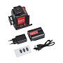 - Яркий зелёный лазер: луч с длиной волны 520 нм отлично виден даже в условиях интенсивного освещения, обеспечивая рабочий радиус до 25 метров, а при работе с приемником — до 50 метров.