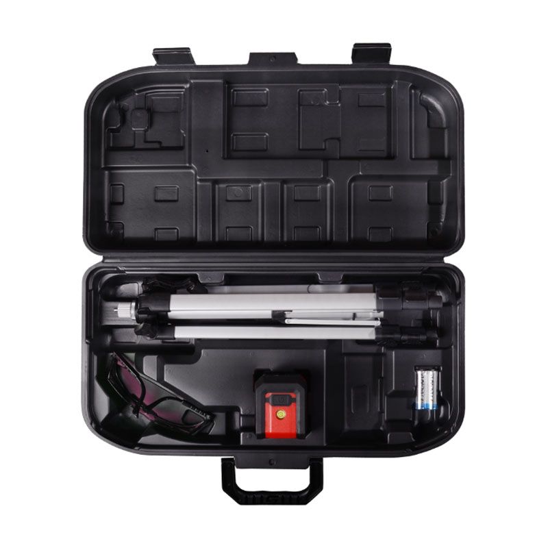- Два ярких красных луча: Устройство проецирует чёткие горизонтальную и вертикальную линии, что открывает возможности для множества операций: