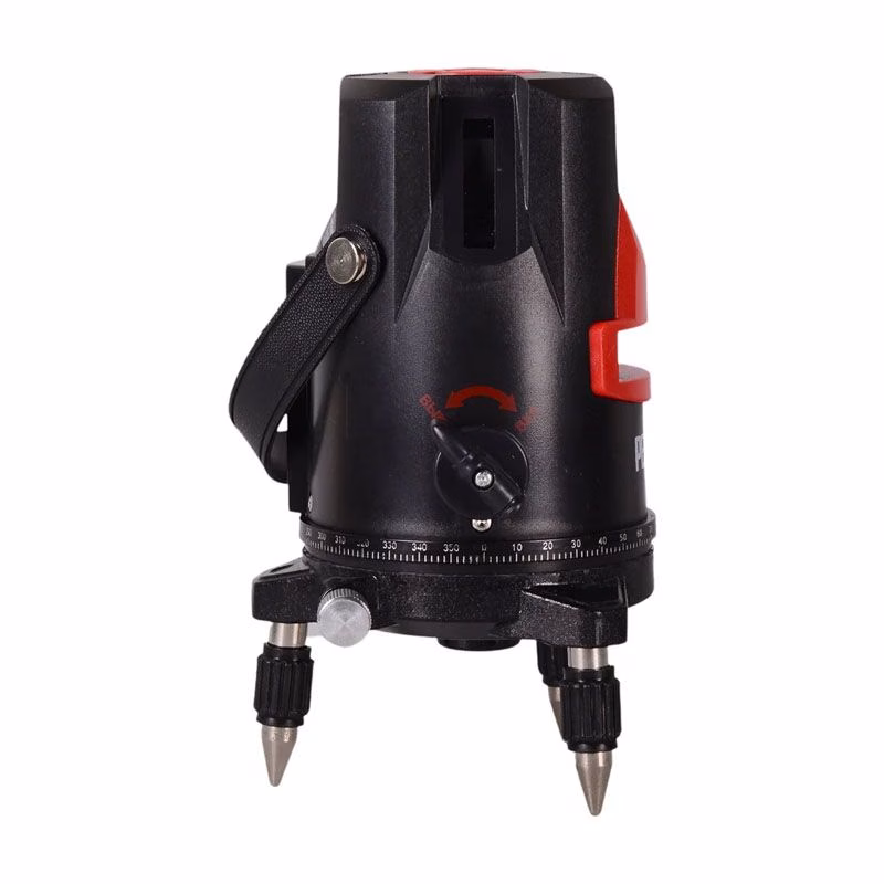 - Построение трёх красных лазерных лучей: вертикальная и горизонтальная плоскости плюс точка отвеса (надир).
