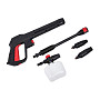 - Пенная насадка улучшает результат при использовании моющих средств, позволяет сделать более качественно и вдвое быстрее. Также с её помощью проще избежать повреждений, поскольку абразивы растворяются.