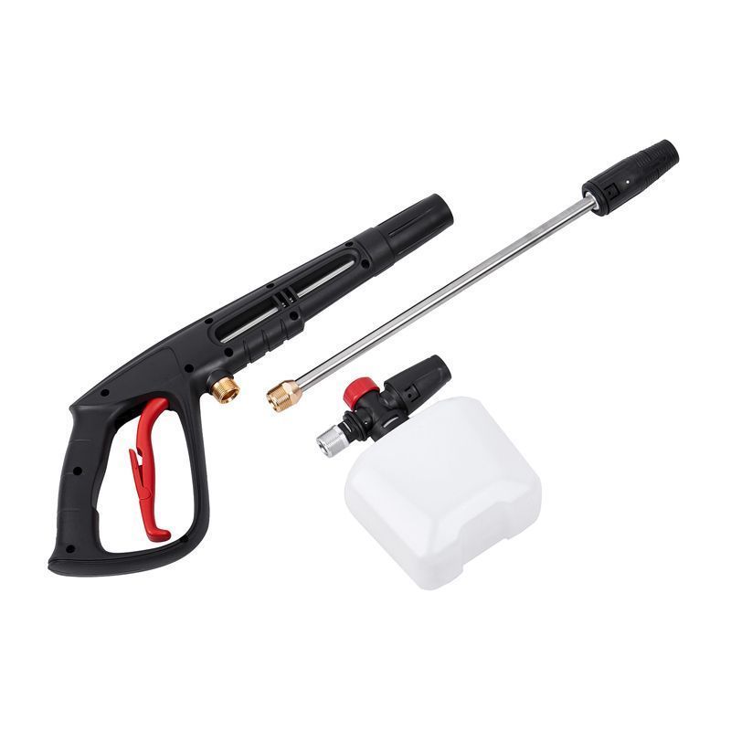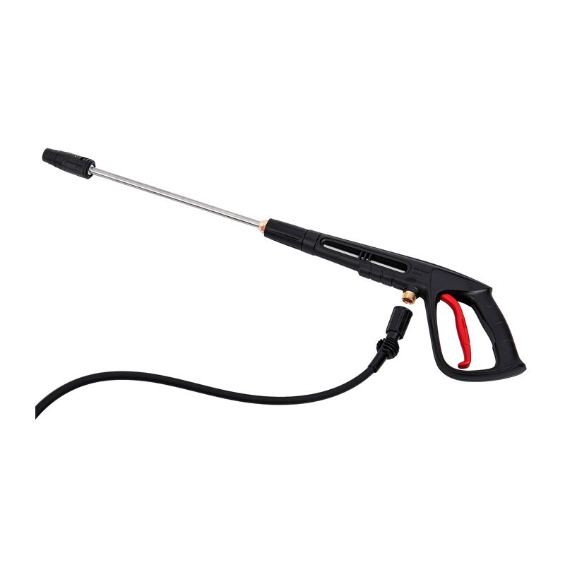 - КомплектацияНасадка на пистолет распылительная, шланг высокого давления из армированной резины, быстросъемный коннектор с фильтром, быстросъемный переходник на шланг 3/4",игла для прочистки сопла.