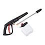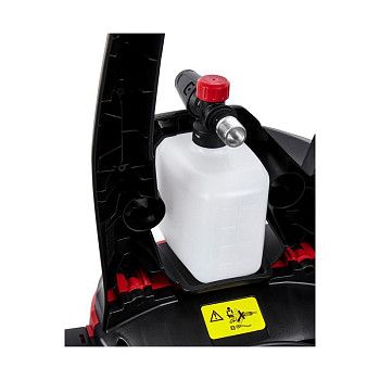 - За счёт использования пенной насадки, предоставленной в комплекте, можно быстро и более качественно очистить поверхности с помощью моющих веществ. Также она гарантирует расщепление абразивов, поэтому повреждения и царапины исключены.