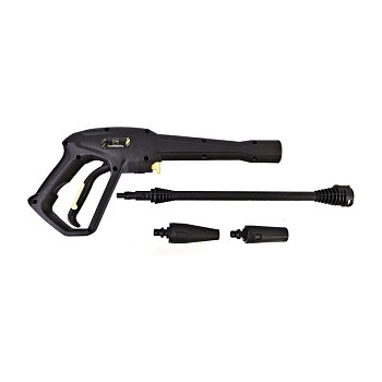 - КомплектацияПистолет-распылитель, трубка-распылитель, распыляющая насадка, турбо насадка, колеса (2 шт.), вал крепления колес, поворотные колеса (2 шт.), внешний бачок для моющего средства