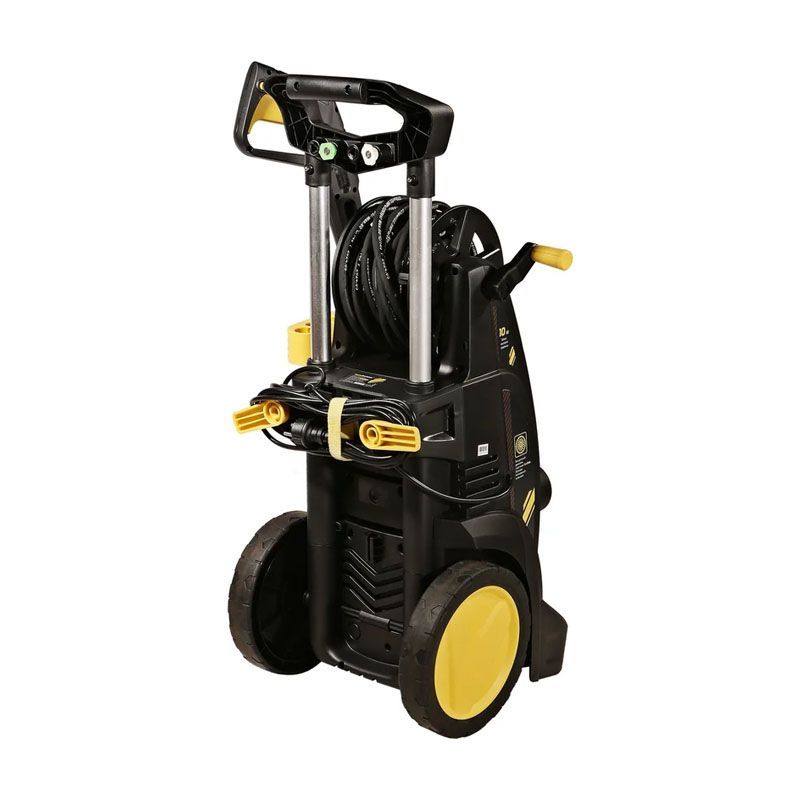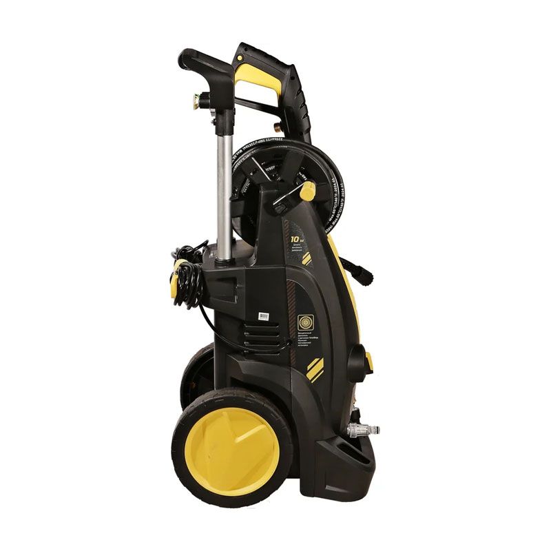 - Полная комплектация для комфортной работы: в набор входит 10-метровый шланг высокого давления, что даёт большую свободу передвижения без необходимости частого переноса самой мойки.