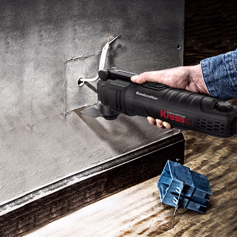 Электрический мультитул KRESS KU680 или реноватор работает от сети, пользуется популярностью благодаря выполнению различных задач: распила, сверления, шлифовки поверхностей и др. Это позволяет сократить расходы, т. к. перечисленные операции выполняются меньшим количеством инструмента.