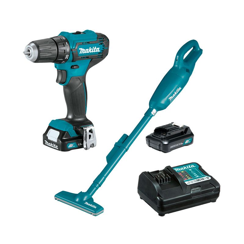 Функциональный набор инструмента Makita CLX226X1 включает в себя дрель-шуруповёрт, пылесос. Чаще всего применяется в монтажных работа, а также при ремонте. Включается с помощью литий-ионных батарей 12 В.