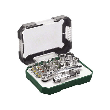 - НасадкиХраповый механизм (трещотка), универсальный магнитный держатель, адаптер для торцевых ключей, 4 торцевых ключа (6, 8, 10, 13 мм)