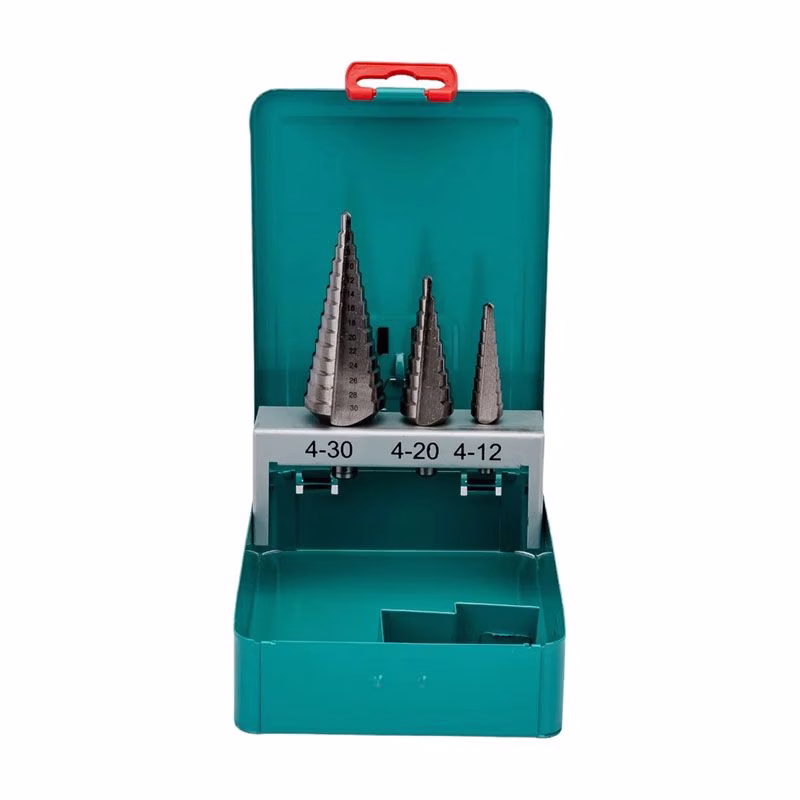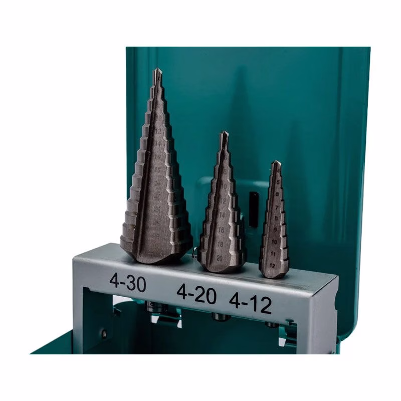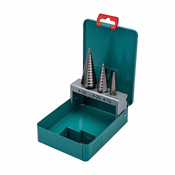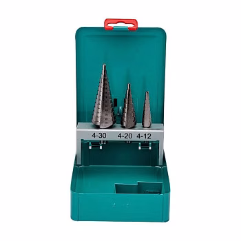 В ассортименте представлены три варианта комплектации, отличающиеся диапазоном диаметров и длиной инструмента. Вы можете выбрать набор с диапазоном 4-12 мм (длина 65 мм), 4-20 мм (длина 75 мм) или самый универсальный на 4-30 мм (длина 100 мм). Каждое ступенчатое сверло в наборе имеет цилиндрический хвостовик для надёжного крепления в стандартном патроне и изготовлено из быстрорежущей стали HSS, что обеспечивает повышенную износостойкость и долгий срок службы.