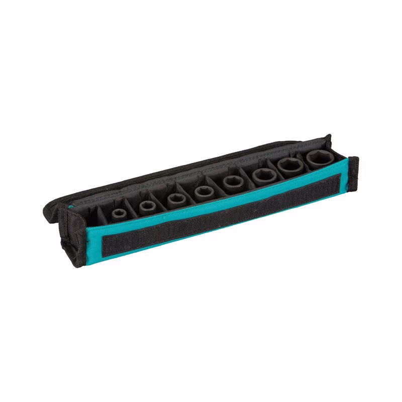 Восемь торцевых ключей с квадратным хвостовиком 1/2" размеров 8, 10, 12, 13, 14, 17, 19, 21 мм. Идеально подходит для ударных гайковертов с головкой 1/2 дюйма и стопорным штифтом. Стопорный штифт и резиновое кольцо входят в комплект. Изготовлен из хромомолибдена (CR-MO). В тонкой сумке для хранения и сортировки, с отделением, например, для английских булавок и резиновых колец.