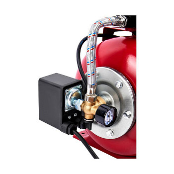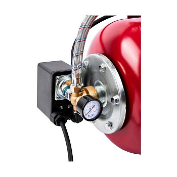 - Гидроаккумулятор мембранного типа объёмом 24 литра, что снижает количество включений двигателя, продлевая его ресурс и поддерживая стабильное давление в кранах.