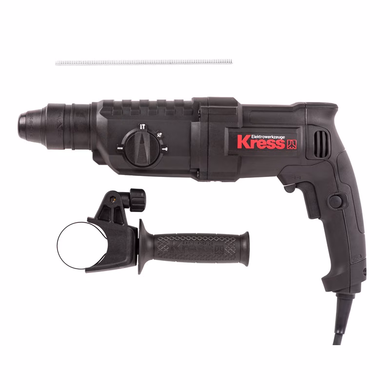Сетевой перфоратор KRESS KU320 – пример немецкого качества, умноженного на многолетний опыт. Такой инструмент подходит для большинства бытовых работ, чему способствует энергия удара – 3 Дж. Он облегчает штробление, скалывание плитки, штукатурки, выполняет отверстия под распространённый крепёж (дюбели, анкерные болты), помогает демонтировать старые конструкции. Благодаря мощности 850 Вт и ударной скорости 5000 уд/мин расширяются возможности инструмента – облегчается прохождение через твёрдый материал в режиме долбления, сверления с долблением.