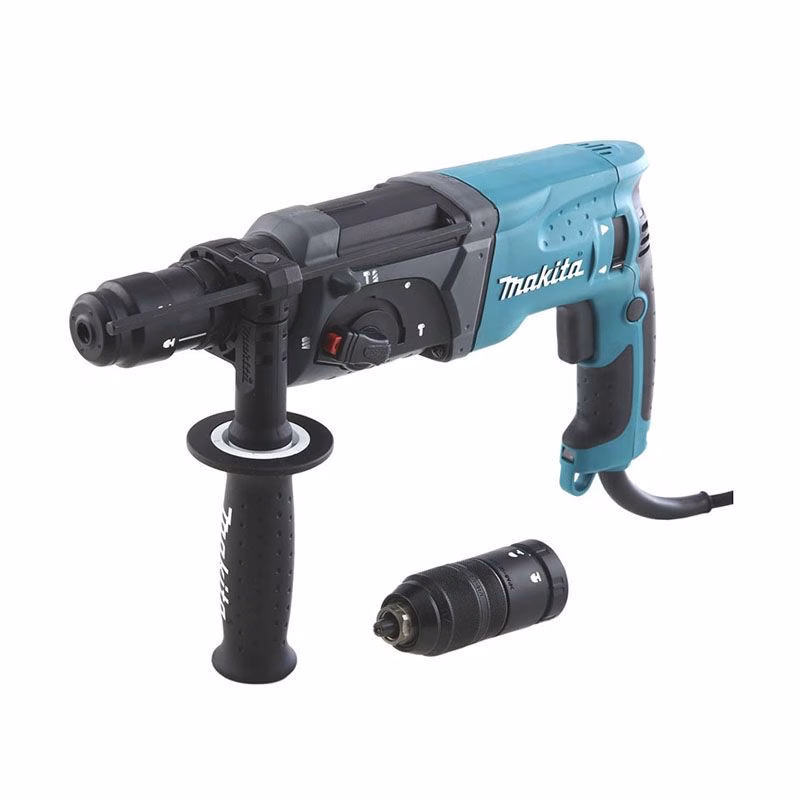 С его помощью перекрытия многоэтажек под замену стояка пробиваются на «ура», с трудом поддаются только «хрущевки». При долблении действует защита от «отдачи», поэтому на финише руки в полном порядке. Правда, во время объемных работ (снятие кафеля) периодически нужно делать передышки, чтобы в режиме удара перф не «сгорел». В плюс макита hr2470ft - быстросъемный патрон, который подходит под обычное сверло. Удобно, когда нужно просверлить дырку в металле или перемешать раствор. Насадки легко менять, руки не скользят, длинный шнур и прочный вместительный кейс. Словом, работаешь всегда с удовольствием, без «сюрпризов».