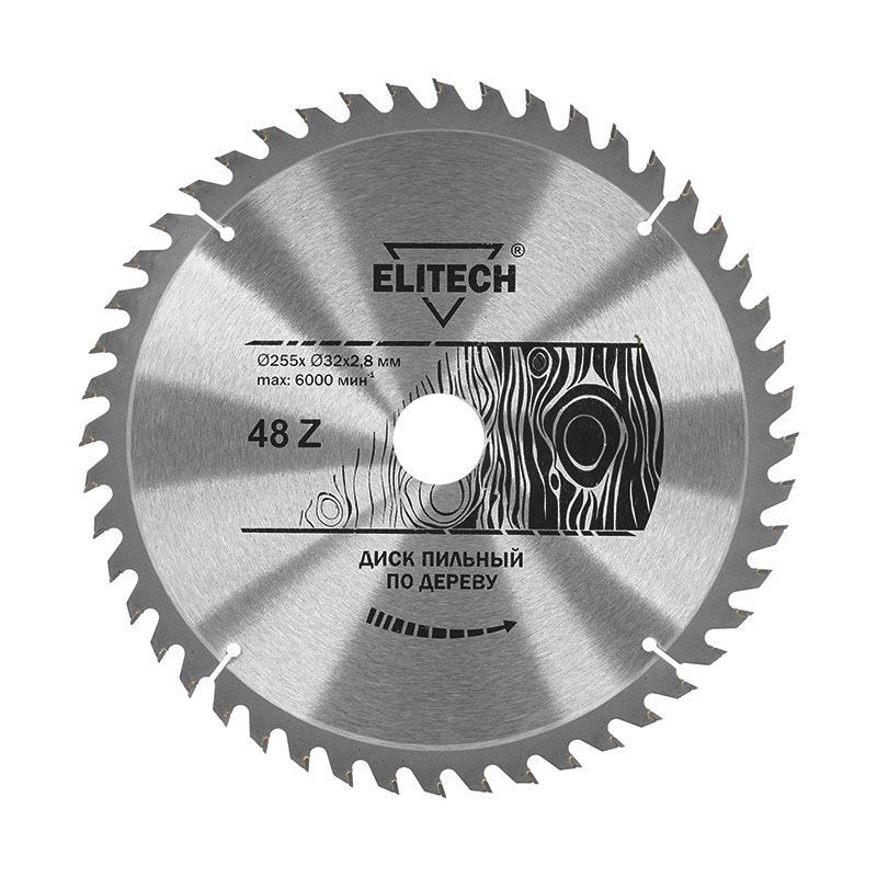 Ключевой особенностью является зуб с переменным скосом (ATB), который легко и остро режёт волокна, подобно ножу. Количество зубьев — 48 штук — является оптимальным для получения ровной, почти полированной поверхности среза без необходимости дополнительного шлифования. Диаметр оснастки составляет 255 мм, а посадочное отверстие — 32 мм с возможностью установки переходных втулок на 30 мм.