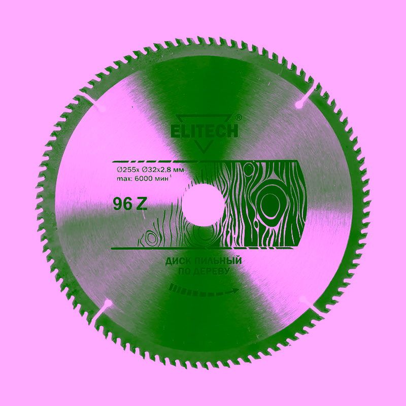 Высокую производительность и чистоту реза обеспечивает зуб с альтернативной топ-скосовой (ATB) геометрией. Благодаря этому рез получается ровным, без сколов и задиров по краям. Большое количество зубьев — 96 штук — позволяет добиться особенно гладкой поверхности среза, что важно при финишной обработке и работе с ценными породами дерева. Каждый зуб изготовлен из твёрдого сплава и тщательно заточен для продолжительной работы без потери остроты.