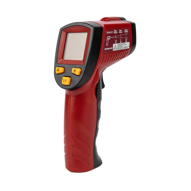 - Оптическое разрешение (показатель визирования): 12:1. Это означает, что на расстоянии 12 сантиметров от объекта измеряется температура площади диаметром около 1 сантиметра.
