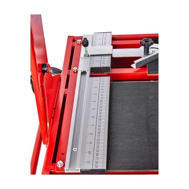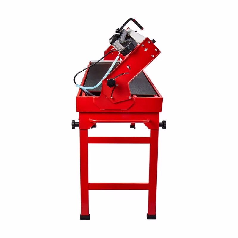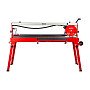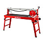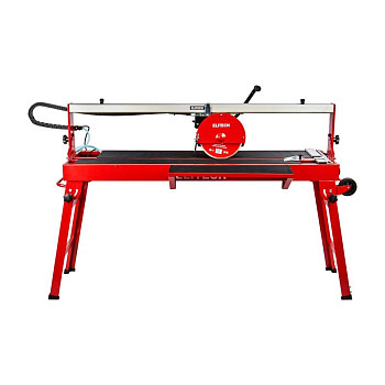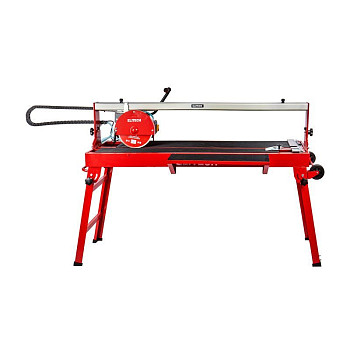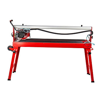 Инструмент в таком исполнении подойдет для бытовых и профессиональных задач, легко режет даже твердые материалы. Он оснащен металлической рамой на складных ножках, колеса обеспечивают мобильность. Плиткорезный станок предназначен для работы с заготовками длиной до 1200 мм.