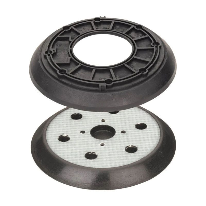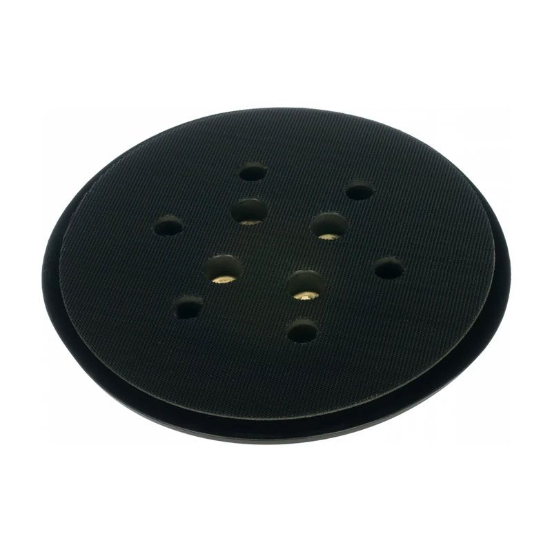 Данная подошва обладает оптимальным диаметром 150 мм для равномерного распределения давления. Специальная перфорация из 6 отверстий эффективно отводит пыль, предотвращая её налипание и продлевая срок службы наждачной бумаги. Усиленная конструкция гарантирует устойчивость к деформациям при интенсивной эксплуатации.