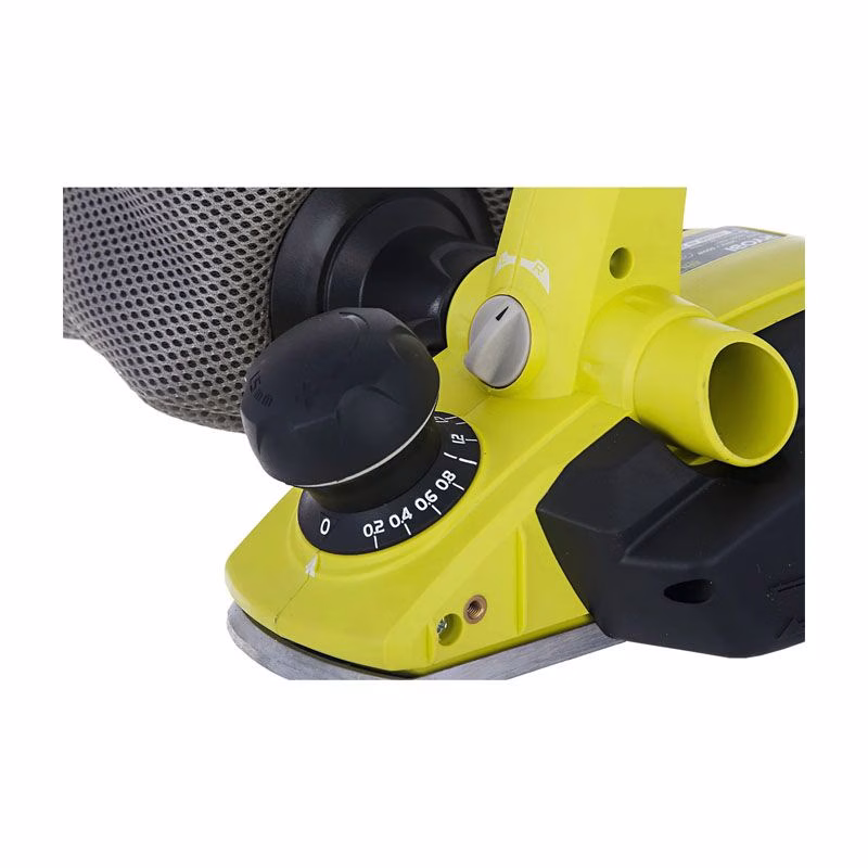 Электрорубанок RYOBI EPN6082CHG – недорогой по главным параметрам подходящий многим мастерам агрегат. Используется он для выполнения стандартных операций по строганию древесины. Скорость без нагрузки у предлагаемой техники составляет 16000 об/мин. Глубина шпунта у нее 0 – 8 мм. Ширина строгания у этого инструмента имеет величину 82 мм, глубина строгания 0 – 1,5 мм.
