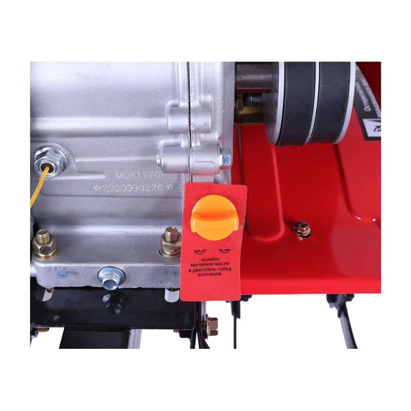- Надёжный привод активной фрезы: ременной привод навесного оборудования обеспечивает плавную передачу крутящего момента и снижает нагрузку на двигатель при встрече с препятствиями.