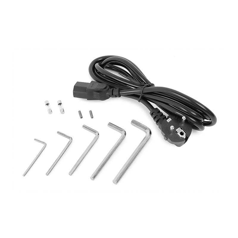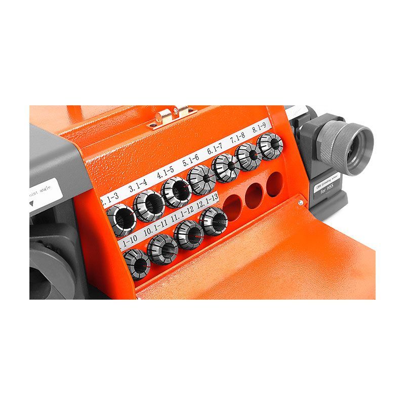 - КомплектацияЦанговый патрон, комплект цанг - 11 шт. (Ø3-13 мм), заточной диск для заточки сверл из быстрорежущей стали, угловые шестигранные ключи (3, 4, 5, и 6 мм), запасные штифты - 2 шт., запасные предохранители - 2 шт., электрокабель.