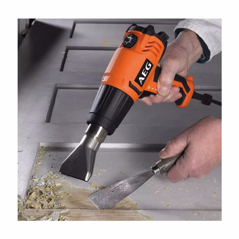 Строительный (технический) фен AEG HG600VK – мощный, рассчитанный на максимально эффективное решение задач агрегат. Он отлично справляется с самыми разнообразными операциями, при выполнении которых необходимо выполнять нагревание материалов. Чаще всего это устройство используется для удаления старых покрытий и для размораживания труб. Обеспечиваемый данной техникой поток воздуха может иметь величину от 300 до 500 л/мин, а уровень температуры от 90 до 600 градусов.