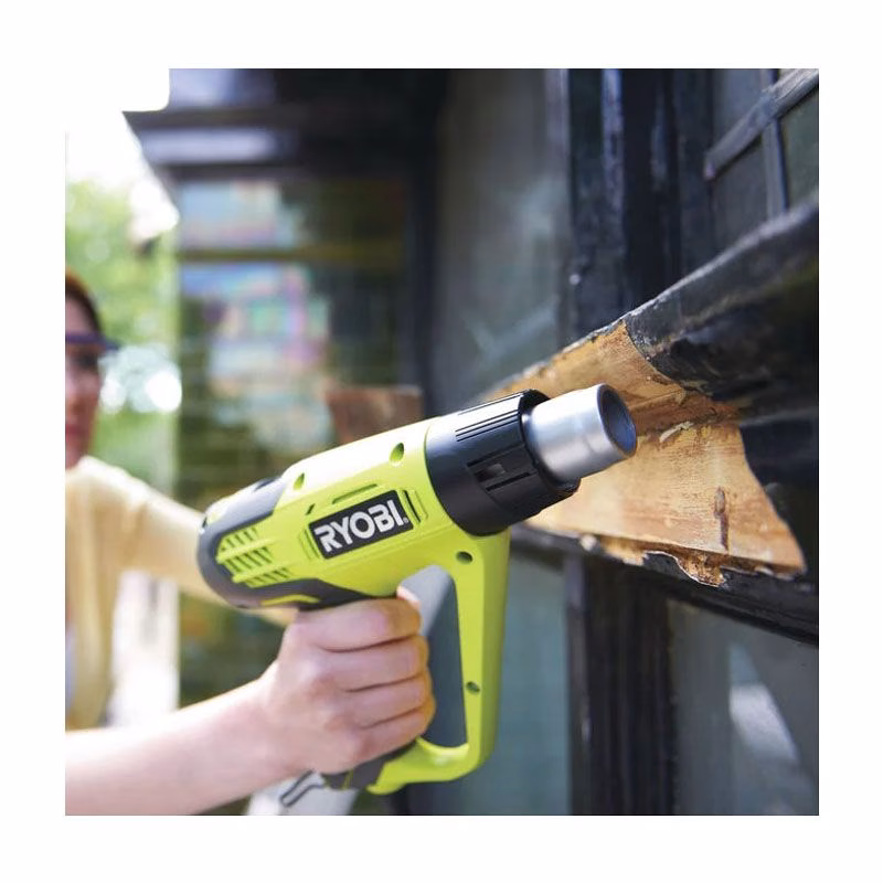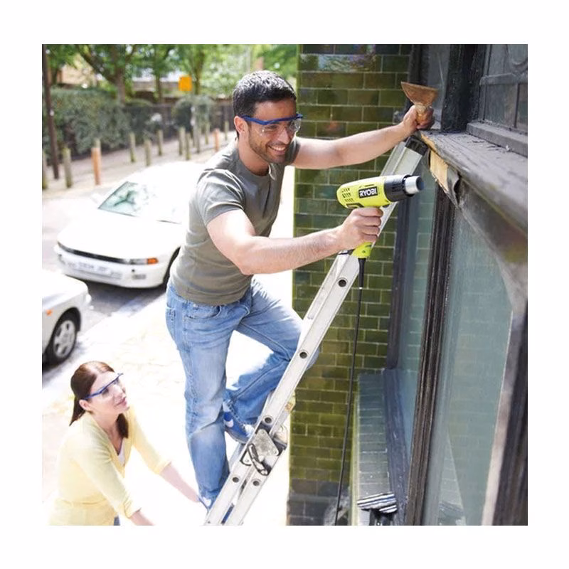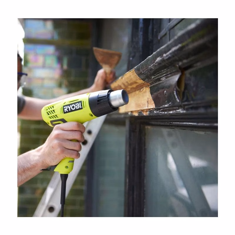 Строительный фен RYOBI EHG2000 – надежный полезный во многих областях деятельности агрегат. Он используется для выполнения разных операций, среди которых разогревание замерзших труб, снятие краски с различных поверхностей, размягчение герметика. Уровень температуры у данной техники может достигать 600 градусов, а поток воздуха 500 л/мин. Что касается мощности, то она равняется 2000 Вт.