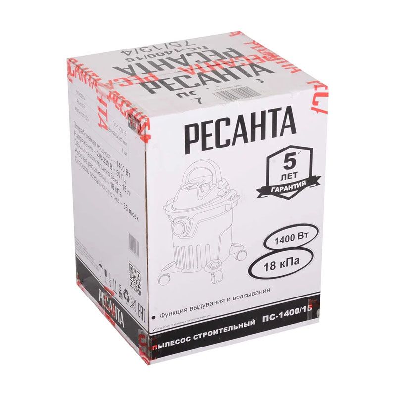 Строительный пылесос Ресанта ПС-1400/15 75/19/4