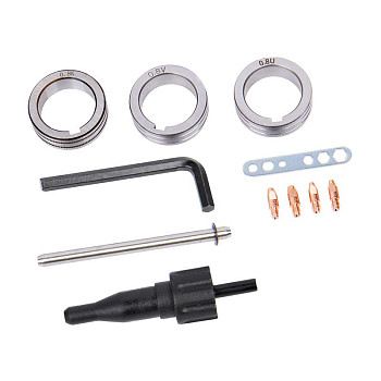 - В комплекте предоставляются сварочные кабели с электродержателем и зажимом массы, предустановленный ролик для стальной проволоки, а также 2 отдельных ролика - для алюминиевой и стальной проволоки, 2 контактных наконечника и тефлоновый канал для алюминия, 2 контактных наконечника для стали, сварочная горелка. Всё это не нужно докупать отдельно.