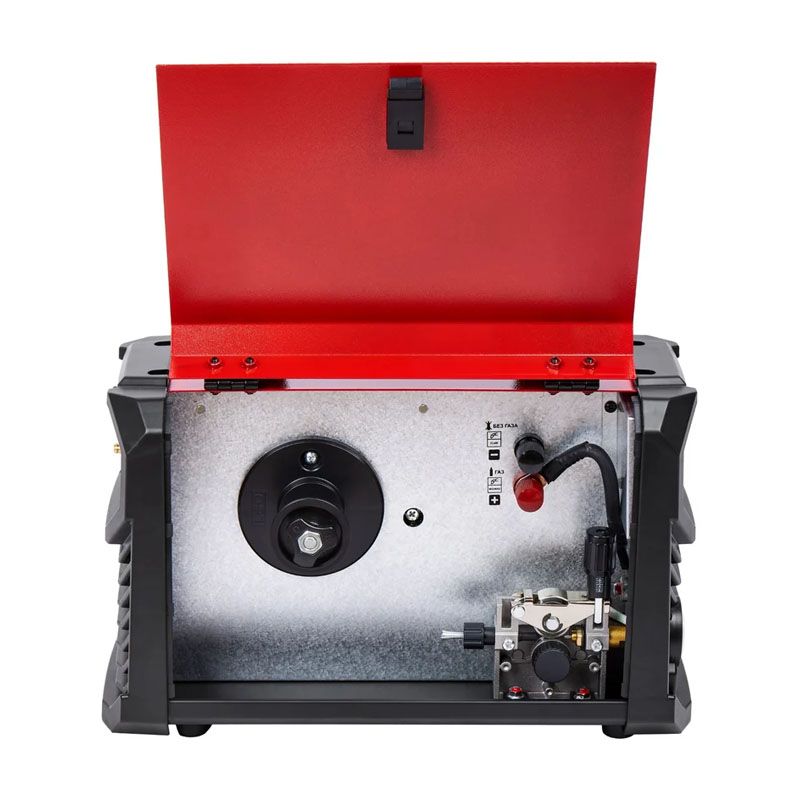 Благодаря технологии сборки IGBT аппарат компактный и легкий, что упрощает эксплуатацию в течение некоторого периода (следует придерживаться рекомендаций производителя по циклу работы – 120/60 А/%). Конструкция разработана так, что выдерживает катушку проволоки до 5 кг, позволяет более точно контролировать параметры благодаря дисплею. Дополнительно предусмотрен евроразъем с комплектом клемм для подключения проводов.