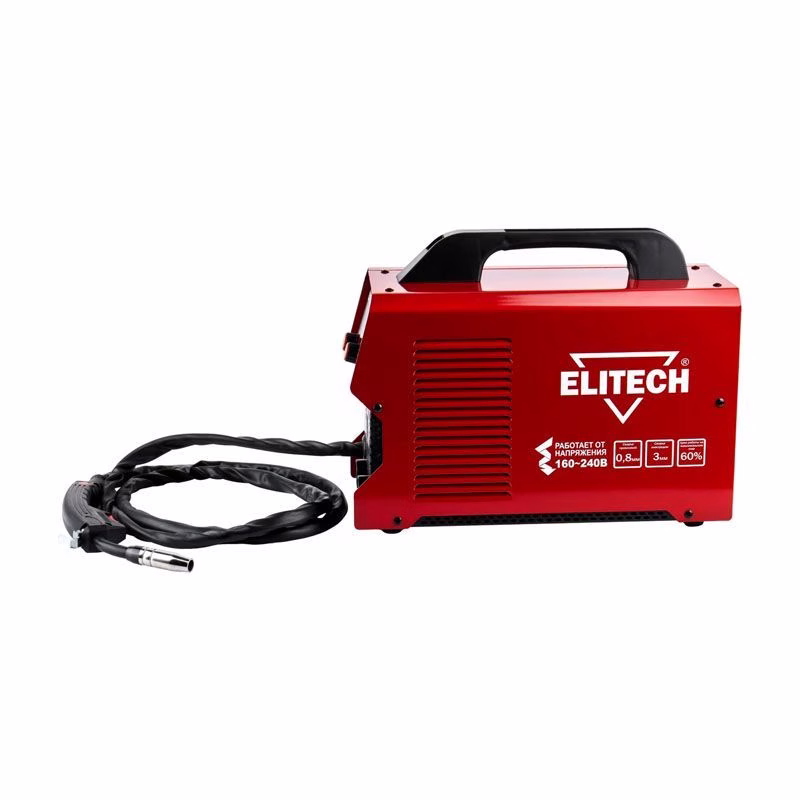 Доступные разные возможности: полуавтоматическая сварка (MIG/MAG) в среде инертного газа (проволокой 0,6-0,8 мм), также применяется проволока с покрытием (FLUX), еще один вариант – ручная электродуговая сварка (MMA), для чего используется электрод с флюсовым покрытием. Сварочный аппарат Элитек в такой модели не теряет эффективности при колебаниях входного напряжения: допустимы отклонения от стандартного значения 220 V в пределах от -30% до +10%.