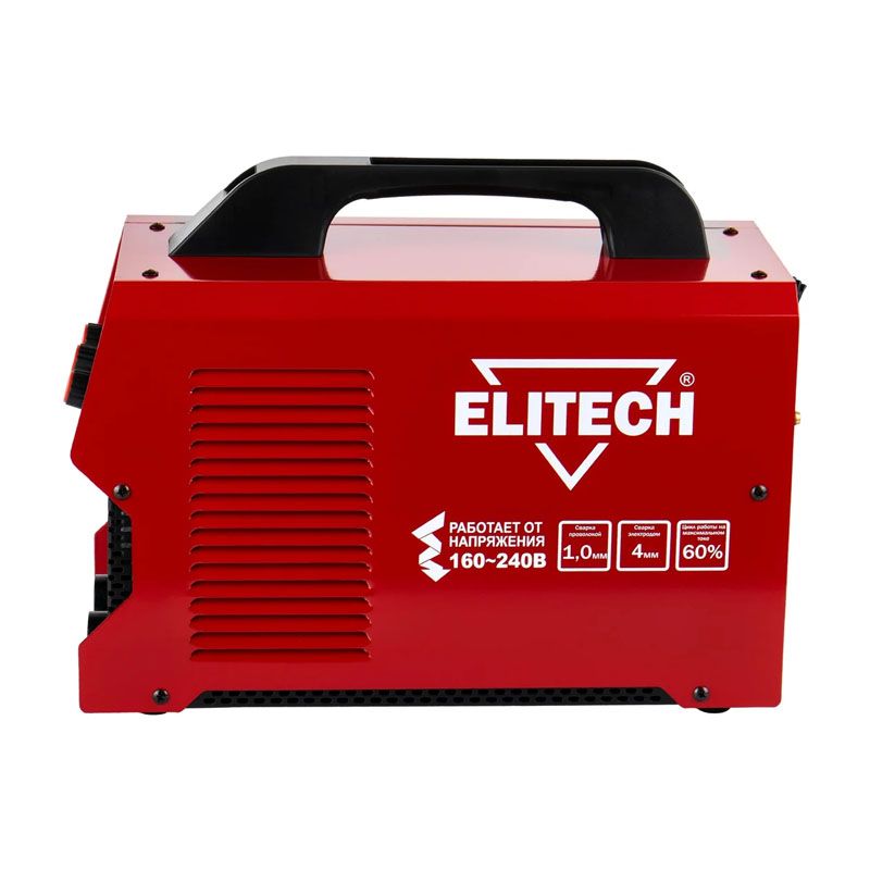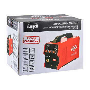 Сварочный инвертор Elitech ИС 180 СП – пример надежного оборудования, которое проходит серьезную проверку качества на производстве, долго служит. Используется для сварочных работ со сталью (нержавеющей, углеродистой). Есть возможность выбирать технику: MIG/MAG – полуавтоматическая сварка выполняется в инертной среде с помощью проволоки диаметром до 1,0 мм, которая подается в рабочую зону, или проволоки с покрытием FLUX, другой вариант – MMA или ручная электродуговая сварка, что позволяет использовать электроды с флюсовым покрытием (диаметр – до 4 мм).