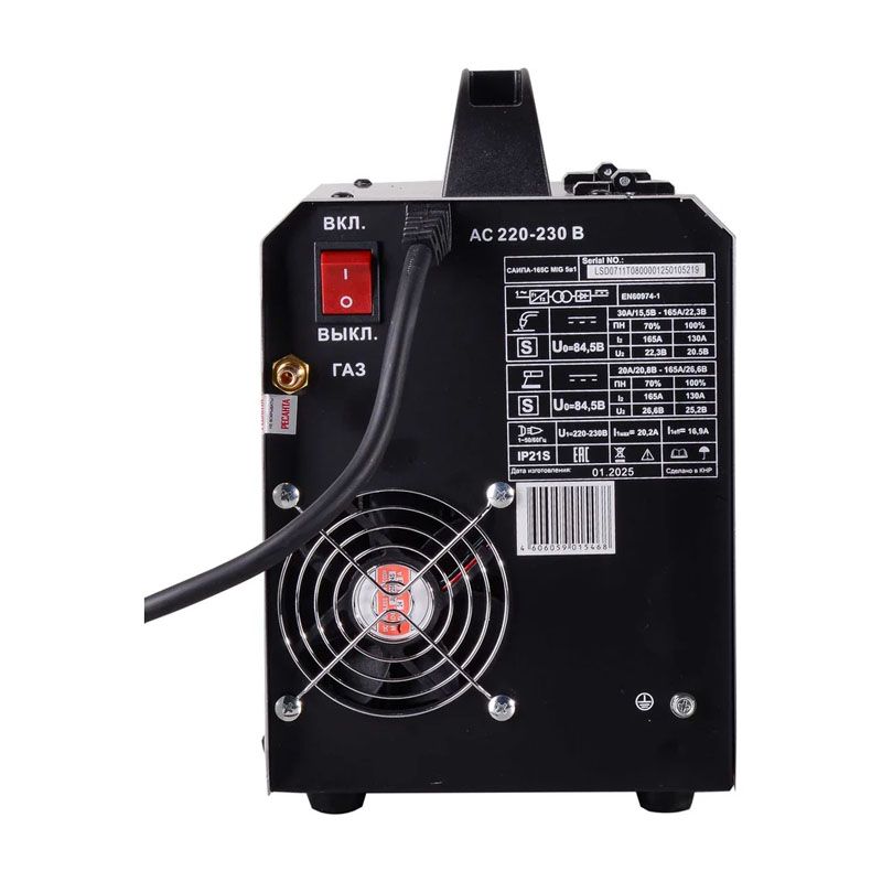 - Диапазон сварочного тока в режиме MIG/MAG (А)30-165