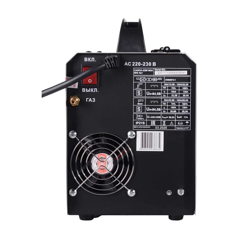 - Диапазон сварочного тока в режиме MIG/MAG (А)30-165