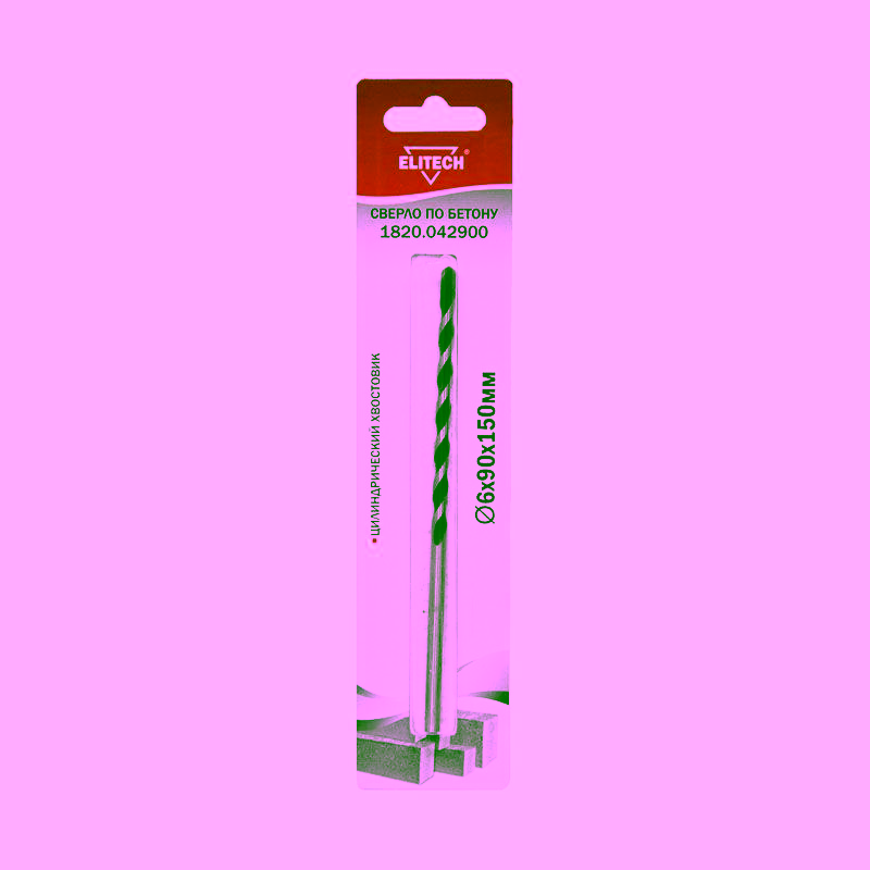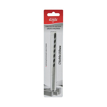 Ключевые параметры инструмента подобраны для решения большинства бытовых и монтажных задач. Диаметр сверла составляет 6 мм, что идеально для установки дюбелей под мелкий крепёж. Общая длина инструмента — 150 мм, что позволяет выполнять отверстия достаточной глубины. Хвостовик выполнен в форме цилиндра стандарта SDS-plus, гарантируя надёжную фиксацию в патроне перфоратора и быструю замену. Сверло по бетону ELitech 1820.042900 поставляется в индивидуальной упаковке, количество в ней — 1 штука.
