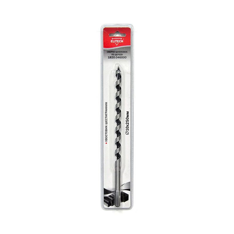 Инструмент имеет диаметр рабочей части 10 мм и общую длину 250 мм, что позволяет выполнять глубокие и аккуратные отверстия в заготовках значительной толщины. Шестигранный хвостовик обеспечивает надёжную фиксацию в патроне дрели или шуруповёрта, предотвращая проскальзывание.
