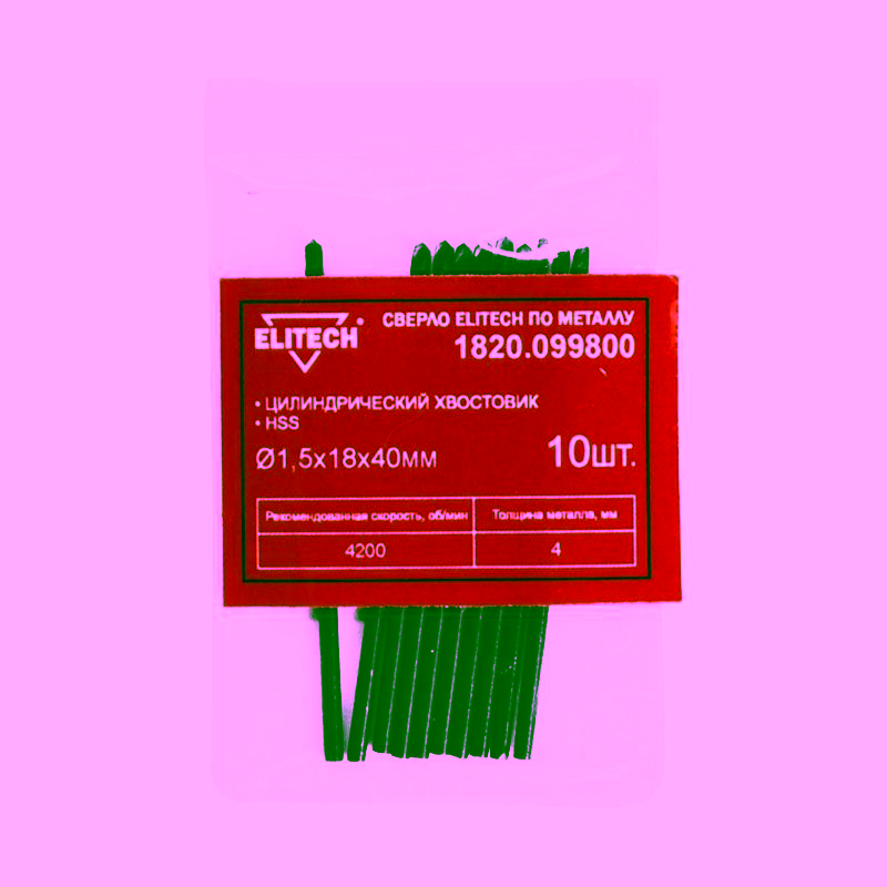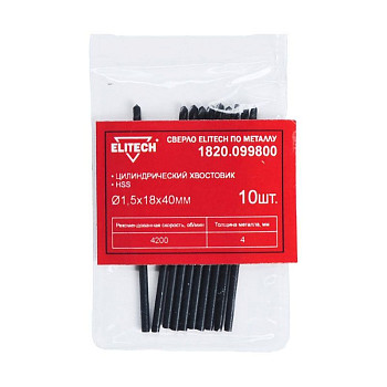 Набор включает десять свёрл с диаметром 1.5 мм и общей длиной 40 мм. Цилиндрический тип хвостовика является наиболее распространённым стандартом, что обеспечивает полную совместимость с большинством ручных и стационарных дрелей, а также шуруповёртов с трёхкулачковым патроном. Изготовленные из быстрорежущей стали HSS, свёрла Elitech обладают повышенной износостойкостью и термостойкостью, что позволяет им сохранять остроту режущей кромки даже при интенсивных нагрузках.