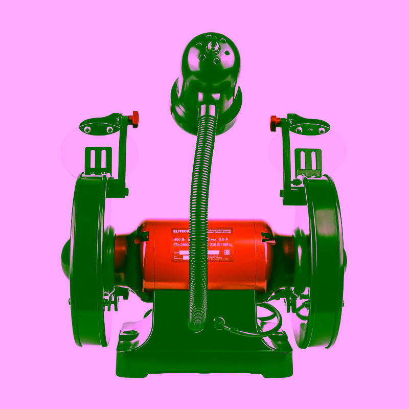 - Два шлифовальных круга разной зернистости в базовой комплектации: один для грубой, другой для чистовой заточки или шлифовки.