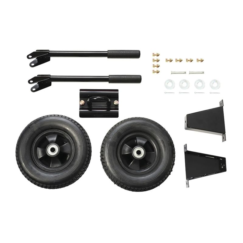 - КомплектацияКолеса 10" 2 шт., складные рукоятки с резиновыми грипсами 2 шт., опорные ножки (стационарные опоры) 2 шт., кронштейн, набор крепежа