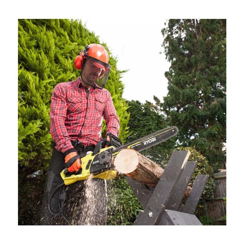 Цепная пила RYOBI RCS2340B – это мощный сетевой электроинструмент, применяемый при выполнении ремонтно-строительных работ, а также работ по уходу за садовым участком. Вес электропилы не превышает 4,8 кг. Производительность обеспечивается за счет двигателя мощностью 2300 Вт, для которого характерно поперечное расположение. Скорость вращения цепи равна 16 м/с. Длина шины составляет 406 мм. В комплект поставки включены масло для смазки цепи и чехол для шины.