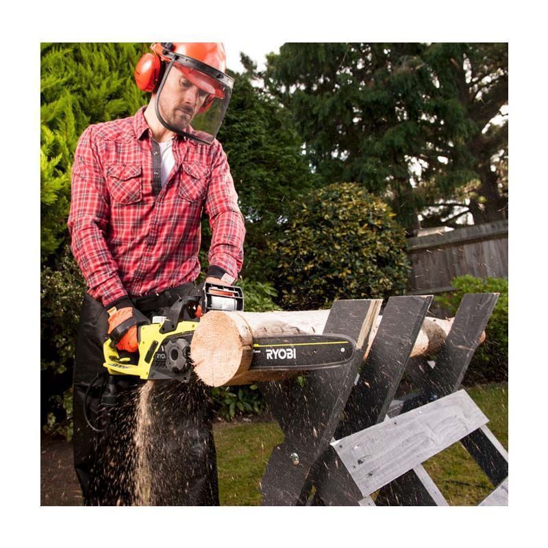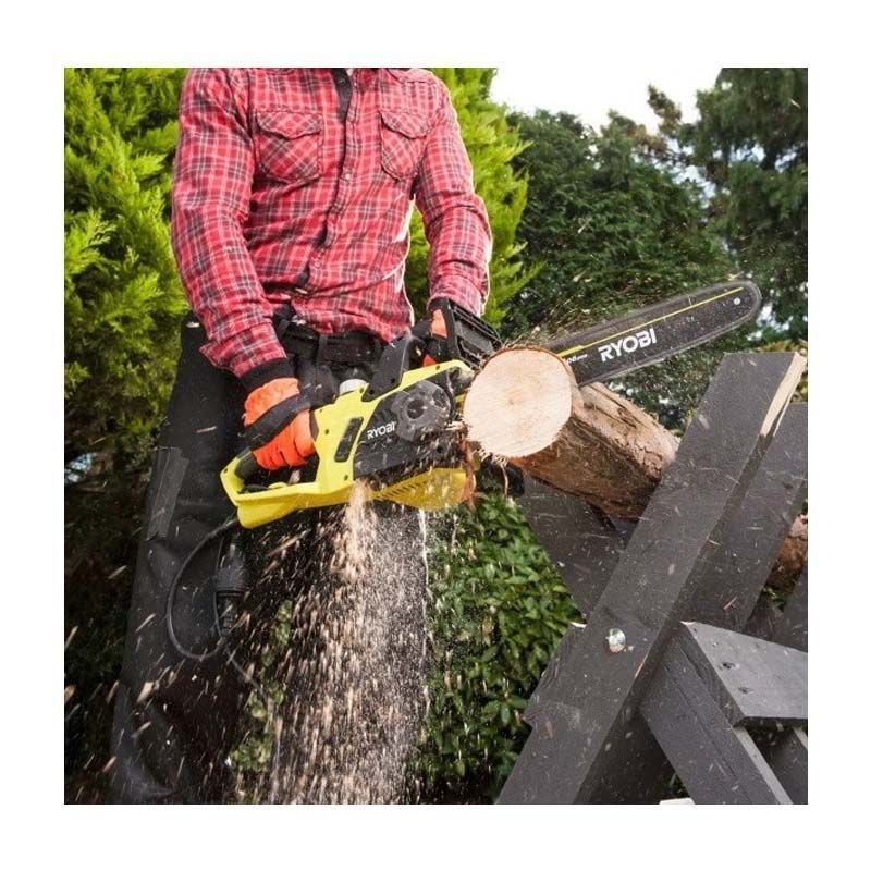 - Относительно небольшой вес в сочетании с хорошей балансировкой обеспечивают удобство эксплуатации электропилы Риоби.