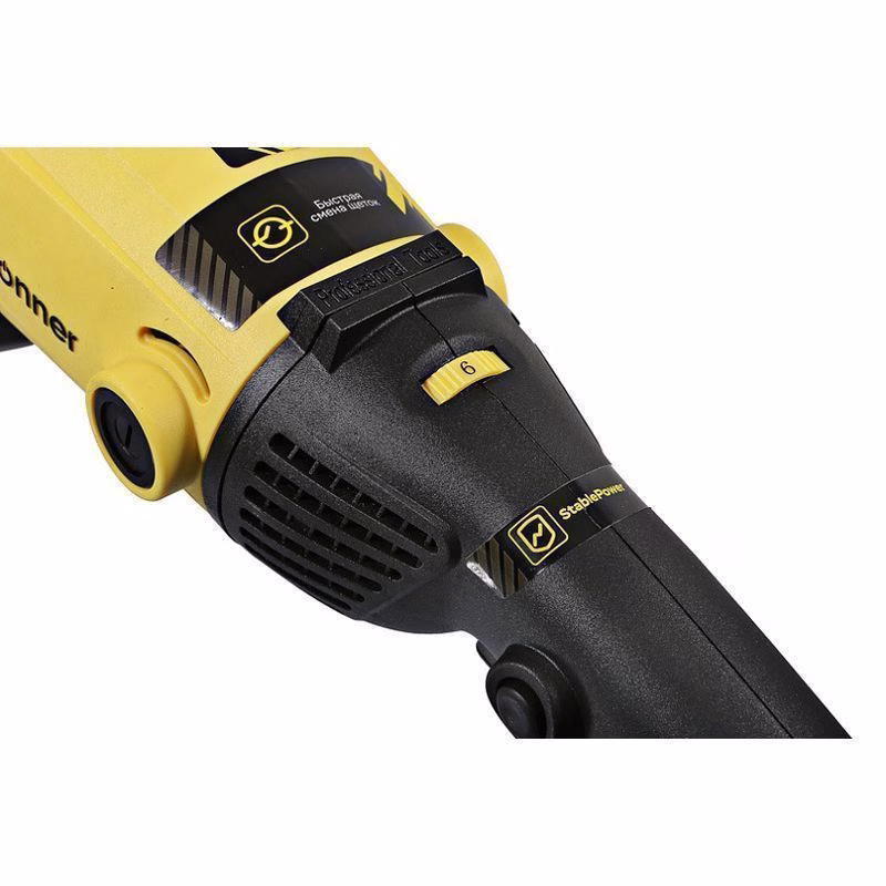 - Высокая мощность двигателя в 1500 Вт обеспечивает стабильную работу даже под серьёзной нагрузкой, позволяя справляться с твёрдыми материалами без опасности заклинивания.