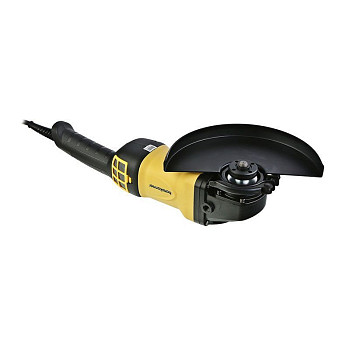 Эта углошлифовальная машина оптимальна для выполнения сложных операций. Большой диск позволяет эффективно резать твёрдый кирпич, бетонные блоки, толстый металлопрокат и трубы. Мощный двигатель предотвращает заклинивание оснастки в материале. Несмотря на солидный вес, инструмент сбалансирован, что снижает усталость оператора при длительной работе. Наличие в комплекте штатного ключа делает замену дисков быстрой и безопасной.