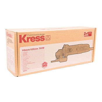 Сетевая болгарка KRESS KU701 – легкий инструмент в эргономичном корпусе. Его удобно держать в руке – предусмотрена боковая рукоять. Вероятность возникновения усталости минимальная – вес угловой шлифмашинки (УШМ) составляет 1,5 кг. Мощность 760 Вт позволяет обрабатывать различные материалы – болгарка режет металл, камень, дерево и др. Еще одна возможность инструмента – шлифовка поверхностей. Диаметр диска 115 мм и скорость вращения 12000 об/мин – параметры, определяющие возможности при резке: можно выбрать толщину материала и регулировать интенсивность работы.