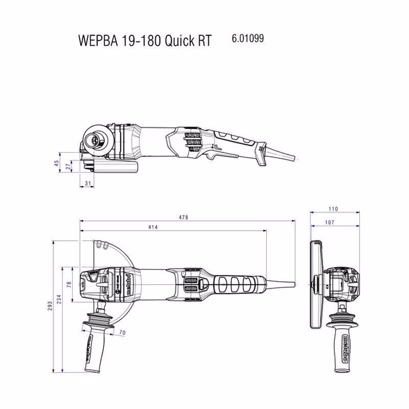 Угловая шлифовальная машина Metabo WEPBA 19-180 Quick RT 601099000